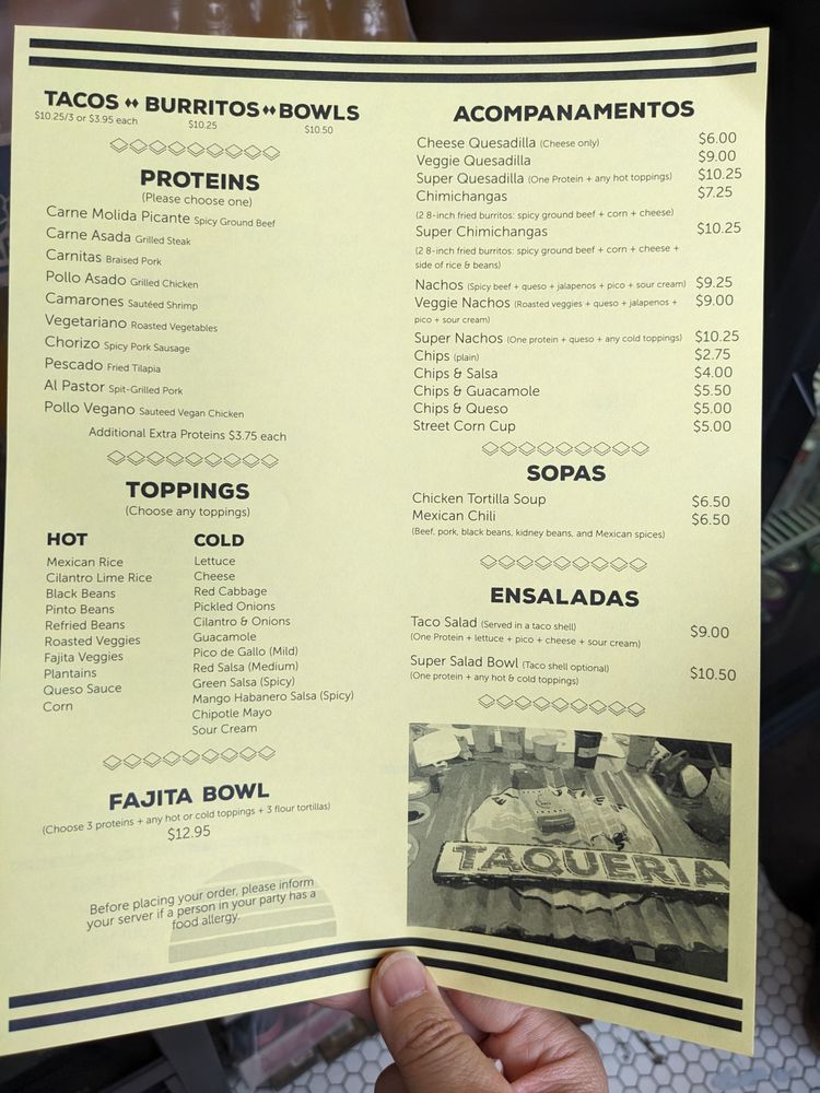 “ I am just reiterating what everyone else here is saying, but this is genuinely a great place to get tacos. The atmosphere and ambiance is spot on, line moved quick, and the food tastes great! Portions are large and reasonably priced as ... ”